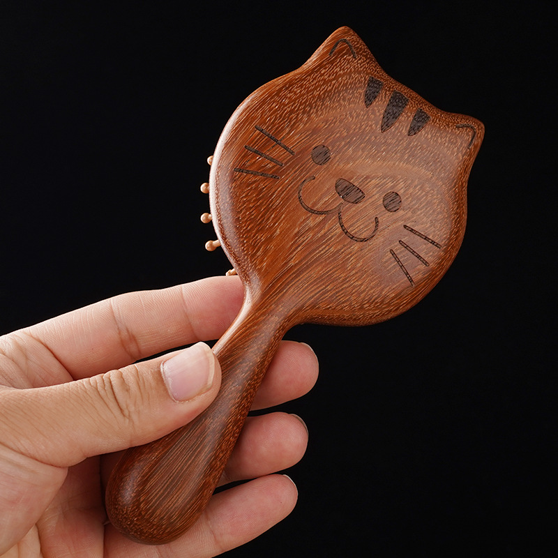 Adorable cat-shaped wooden hair brush made from natural sandalwood. Designed for smooth detangling and gentle scalp massage, it adds a touch of fun and style to your daily hair care routine. Perfect for both adults and kids.