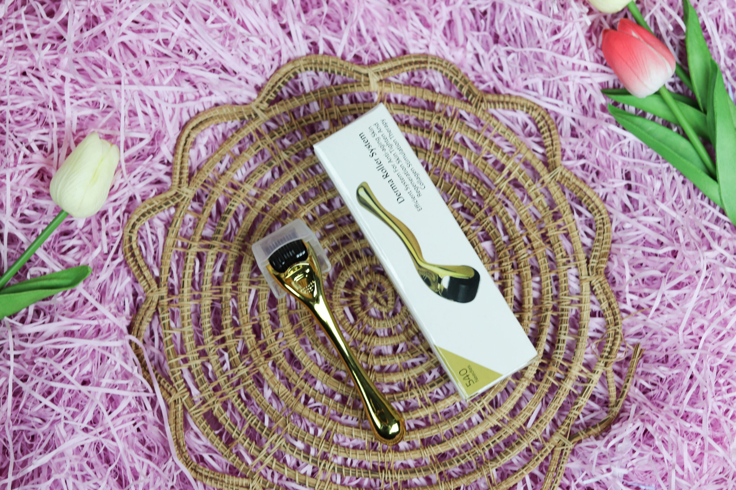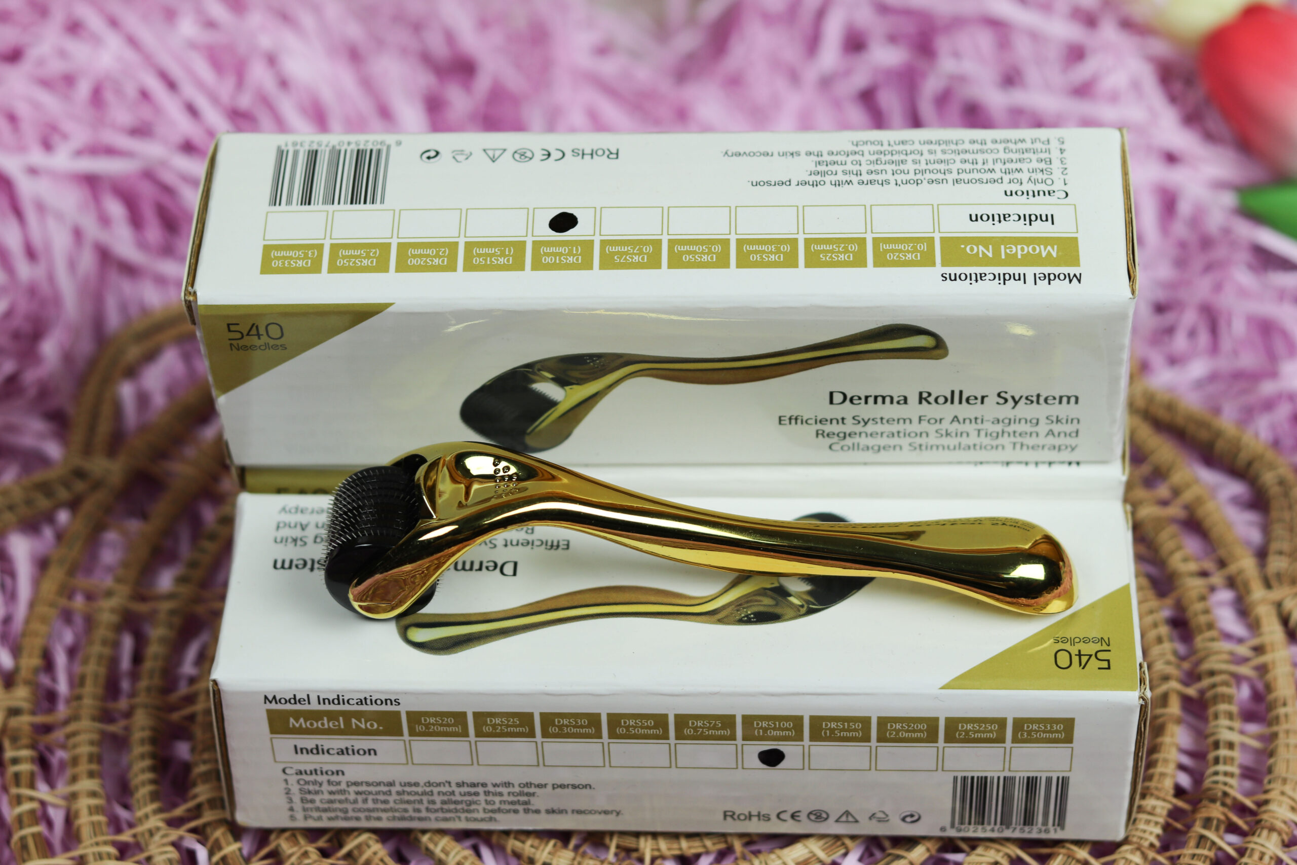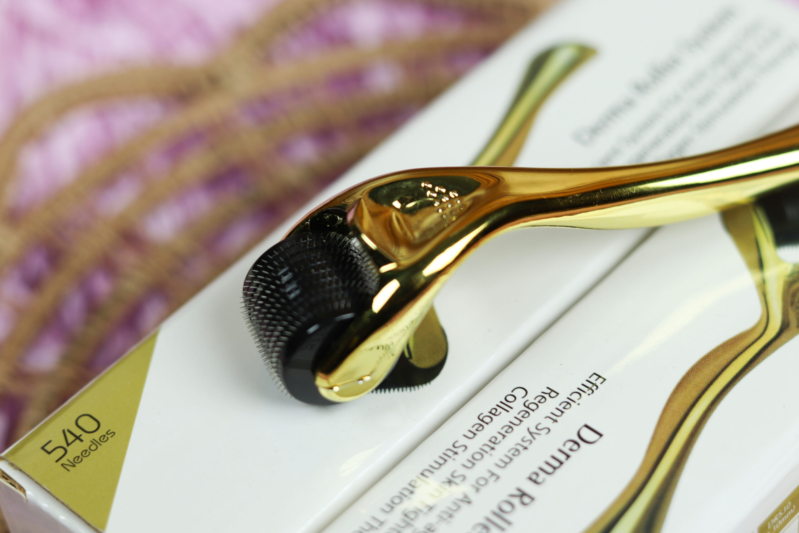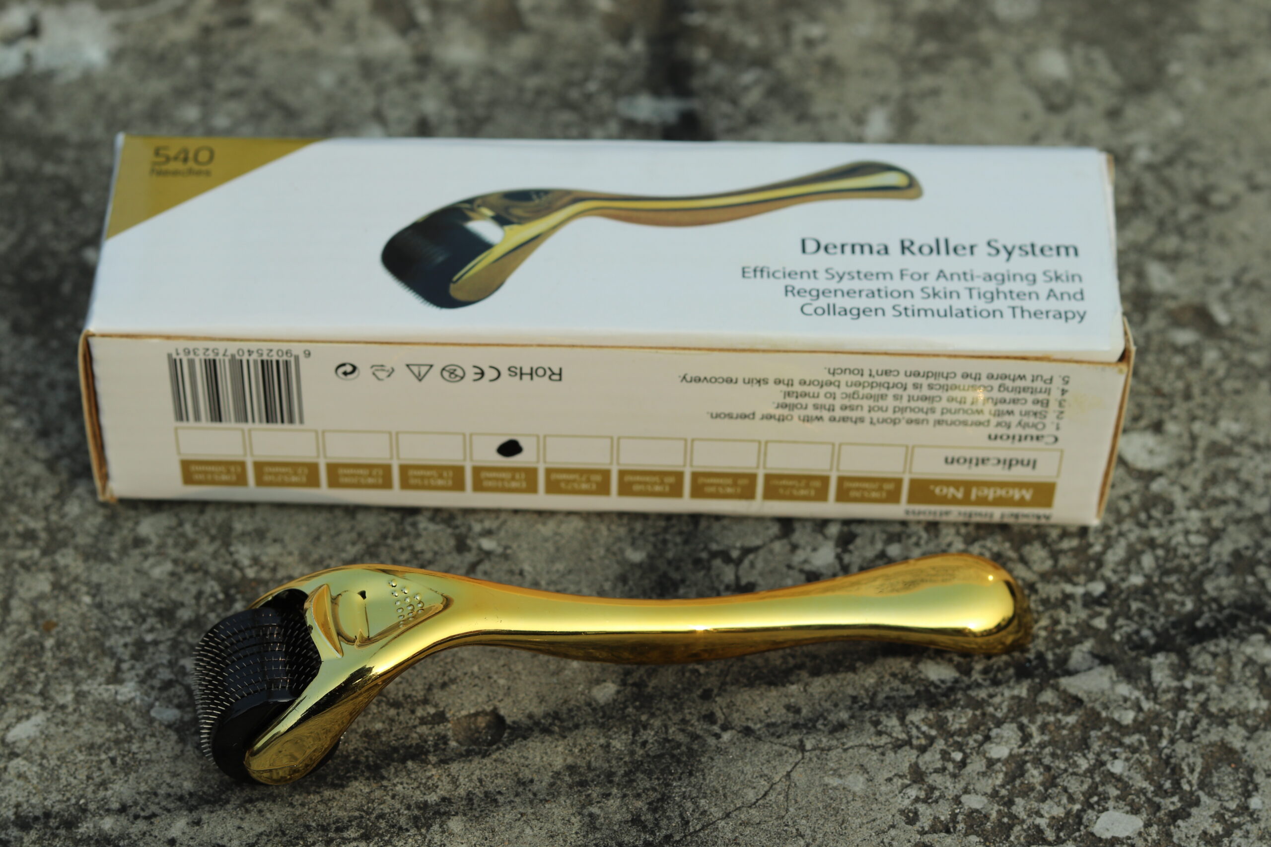 Golden Derma Roller 540 Titanium Needles – Professional Microneedling Tool for Face & Hair Growth