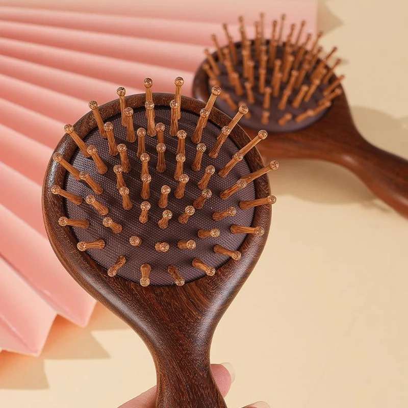 Mini Golden Sandalwood Air Bag Comb Air Cushion Anti Static Massage Wood Comb Curly Hair Comb Brush Hair Curly Hair