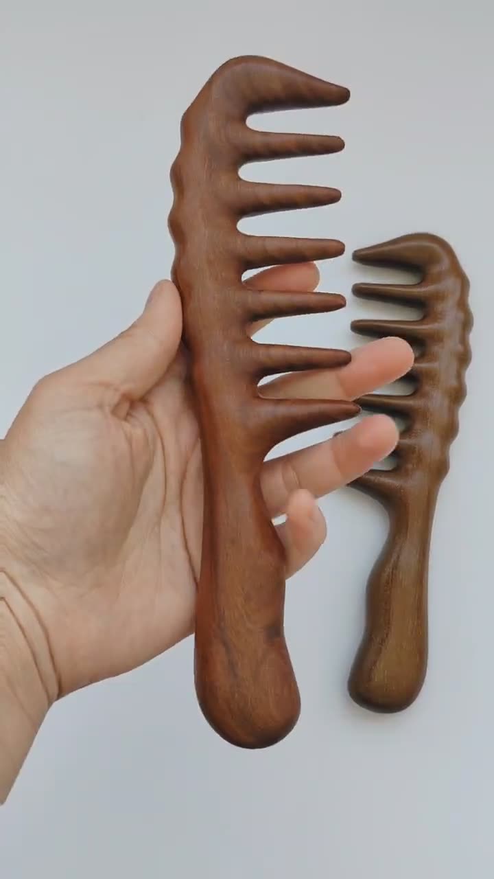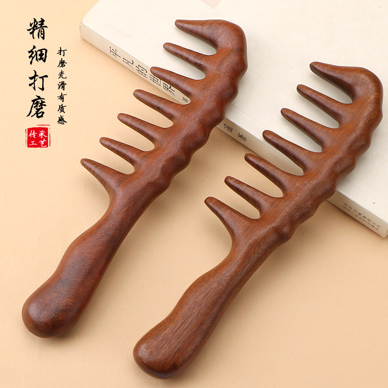 This sandalwood wooden hair comb is designed with wide teeth for smooth detangling and gentle scalp massage. Made from natural wood, it reduces hair breakage, improves scalp circulation, and provides a relaxing hair care experience.