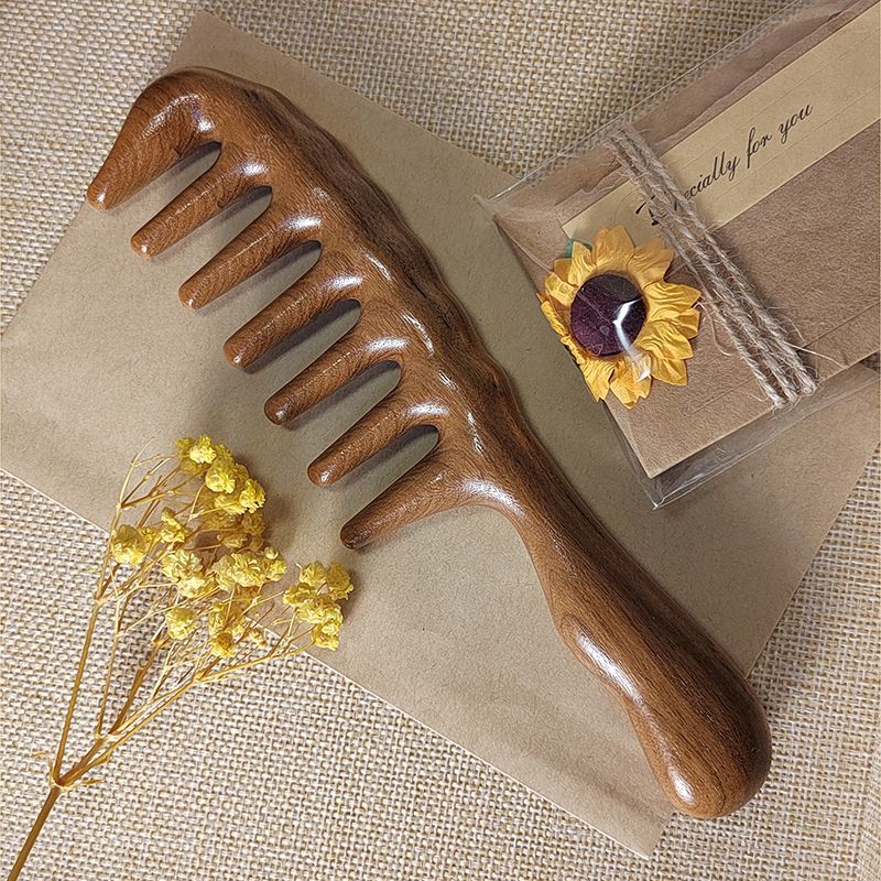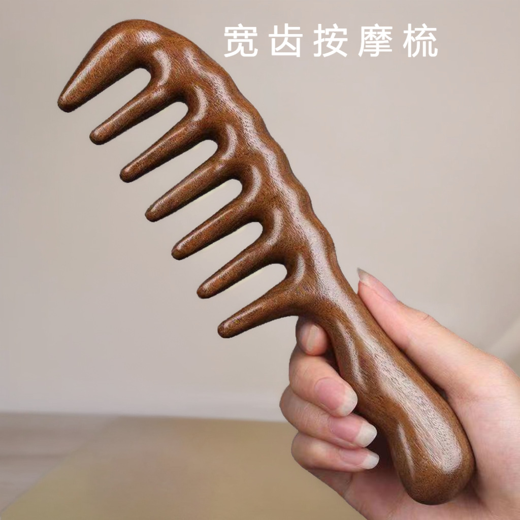 Natural Sandalwood Wooden Extra Wide Tooth Hair Comb with Scalp Massage Design