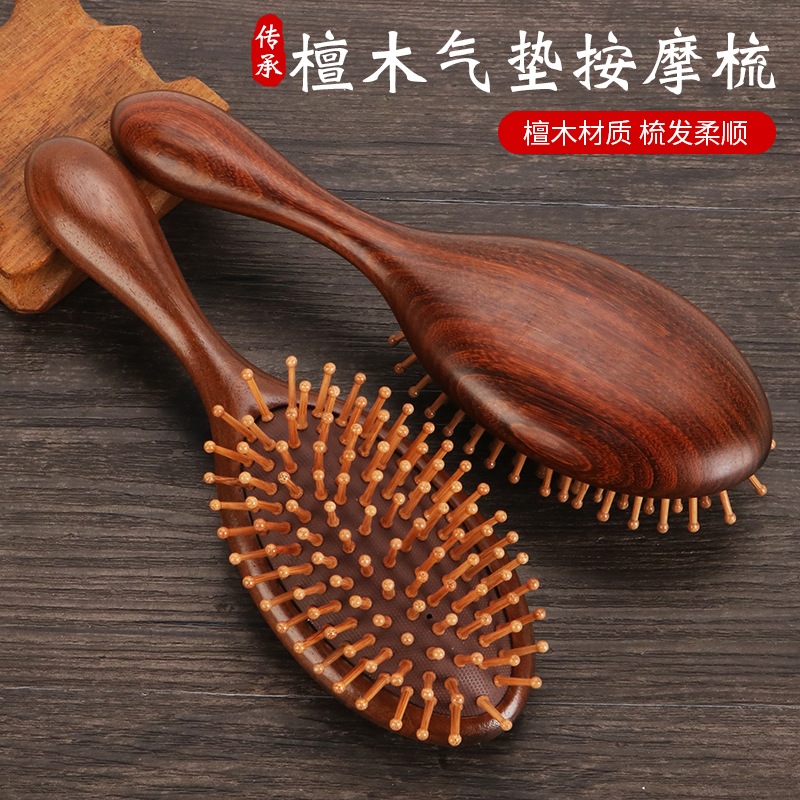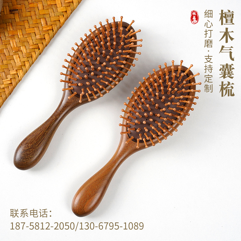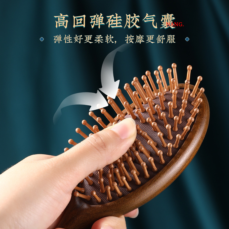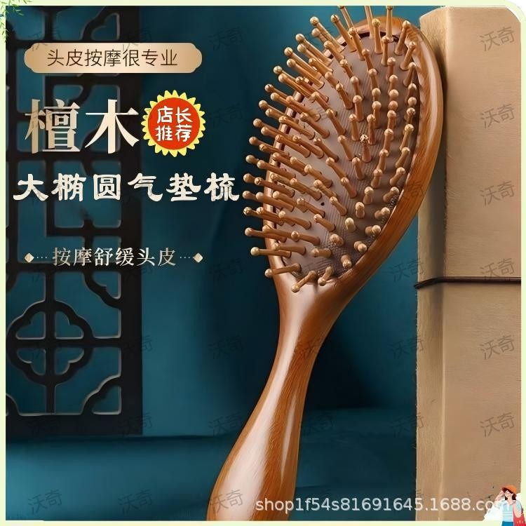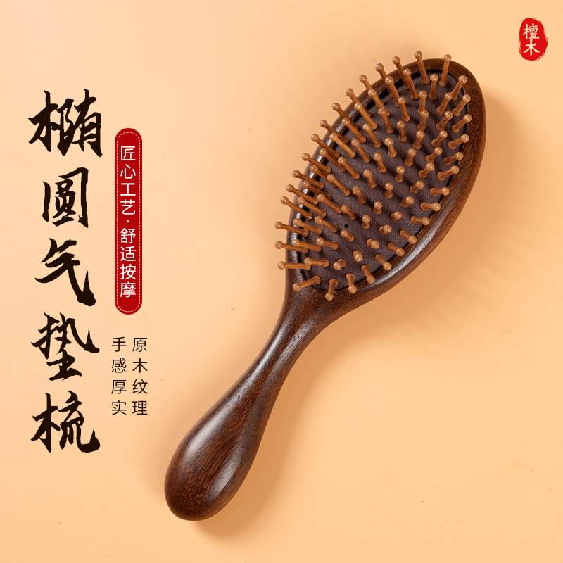 Oval Sandal Wooden Hair Brush – Handcrafted Sandalwood Brush with Soft Rounded Bristles for All Hair Types