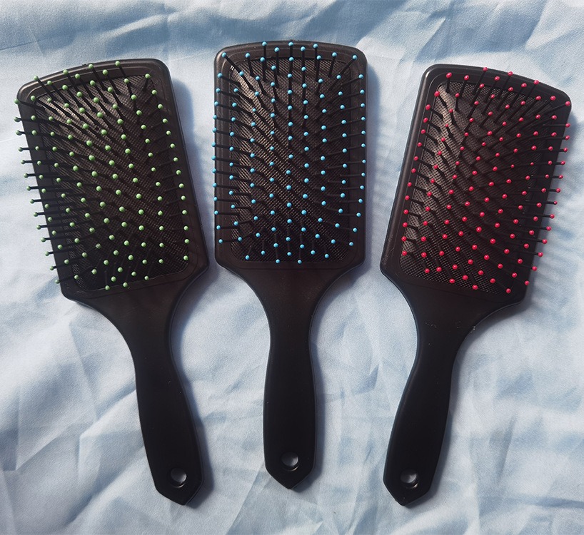 Professional-quality paddle hair brush designed for smooth detangling and gentle scalp massage. Its wide surface, soft-tipped bristles, and anti-static design make it perfect for everyday styling and salon use.