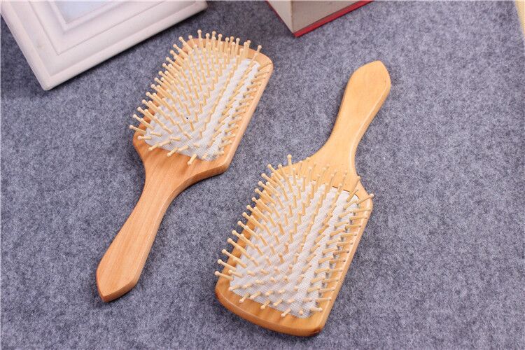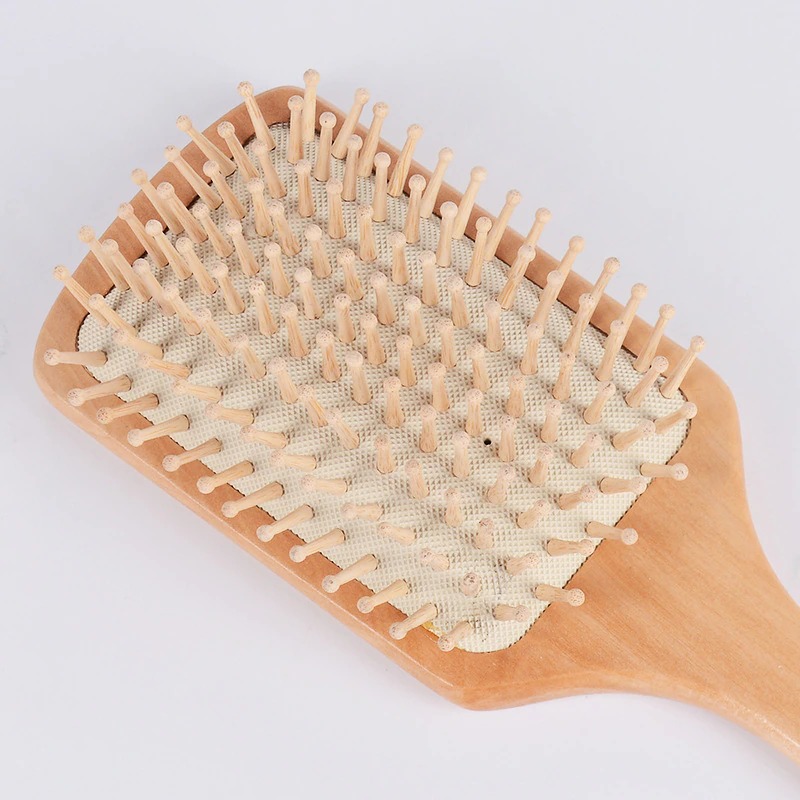 Square Shape Wooden Paddle Hair Brush with Cushion Base & Scalp Massage Pins