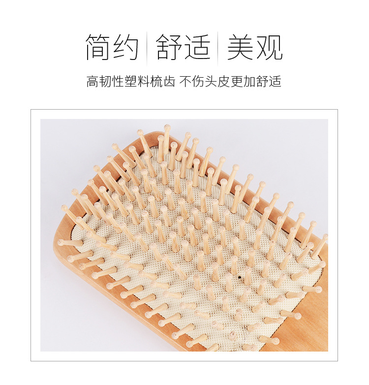This square-shaped wooden paddle hair brush is designed for smooth detangling and gentle scalp massage. Made from natural wood, it features a cushioned base with massage pins that help reduce hair breakage and provide comfortable daily grooming.